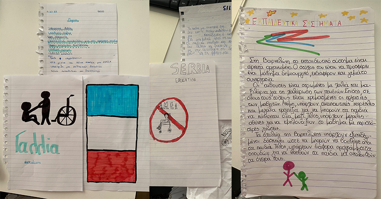 Αρχικά, οι μαθητές χωρίστηκαν σε ομάδες και ανέλαβαν συγκεκριμένους ρόλους, όπως γραμματείς, ζωγράφοι και παραγωγοί ιδεών. Συνεργάστηκαν αρμονικά, αντάλλαξαν απόψεις και αποτύπωσαν στο χαρτί τις σκέψεις τους σχετικά με το πώς φαντάζονται ότι είναι δομημένο το εκπαιδευτικό σύστημα στη χώρα που επέλεξαν, πώς μπορεί να είναι διαρθρωμένες οι τάξεις, αλλά και αν θεωρούν πως η εκπαίδευση εκεί είναι φιλική και συμπεριληπτική προς τους μαθητές με ειδικές ανάγκες.