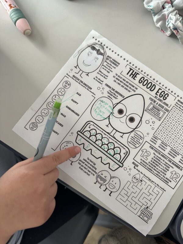 Στη συνέχεια, τα παιδιά συμμετείχαν σε ένα ευχάριστο και δημιουργικό worksheet με λεξικογραμματικές δραστηριότητες, εμπνευσμένες από τις αρχές του Social and Emotional Learning (SEL). Μέσα από αυτή τη διαδικασία, συνδύασαν την εκμάθηση της αγγλικής γλώσσας με την καλλιέργεια σημαντικών κοινωνικοσυναισθηματικών δεξιοτήτων.