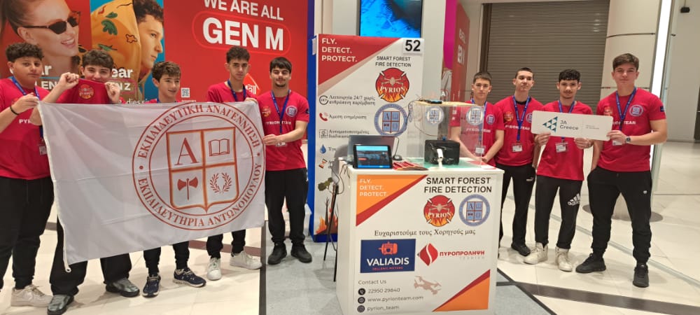 Εξαιρετική ήταν και η παρουσία της ομάδας Pyrion, με τους μαθητές: Χρήστο Χριστοδούλου, Ιωάννη Καστρινάκη, Ανδρέα Λαμπρόπουλο, Γεώργιο Παυλίδη, Οδυσσέα Γκουλιαμτζή Γαλανίδη, Παύλο Βαλιάδη, Πέτρο Αρβανίτη, Παναγιώτη Δεληγιάννη και Θωμά Παπαρίζο. Η ομάδα ανέπτυξε ένα αυτοματοποιημένο σύστημα πυρόσβεσης με drone και ρομποτική βάση, που εντοπίζει και κατασβήνει άμεσα φωτιές, περιορίζοντας τον κίνδυνο εξάπλωσης.
