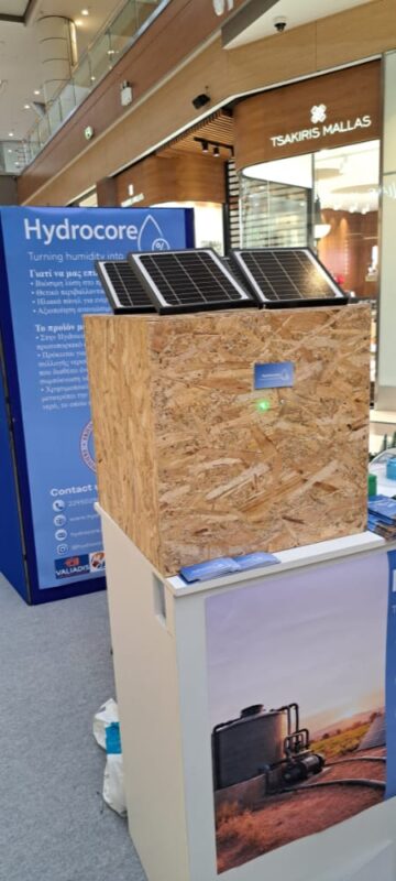 Η Ομάδα παρουσίασε έναν καινοτόμο αφυγραντικό μηχανισμό που συλλέγει νερό από την ατμόσφαιρα, αξιοποιώντας αιολική και ηλιακή ενέργεια, αποθηκεύοντας το νερό σε δεξαμενή και διοχετεύοντάς το για άρδευση ή για την κάλυψη αναγκών ζώων και φυτών, προσφέροντας μια βιώσιμη λύση με χαμηλές ενεργειακές απαιτήσεις.