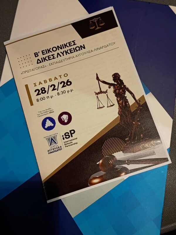Το Σάββατο 28 Φεβρουαρίου 2026 μαθητές και μαθήτριες της Α΄ και Β΄ Λυκείου της Εκπαιδευτική Αναγέννηση συμμετείχαν με ιδιαίτερη επιτυχία στους μαθητικούς αγώνες Εικονικών Δικών «Πρωταγόρας», που πραγματοποιήθηκαν στα Εκπαιδευτήρια Αυγουλέας – Λιναρδάτος, με τη συμμετοχή σχολείων από την Αθήνα και τη Θεσσαλονίκη.