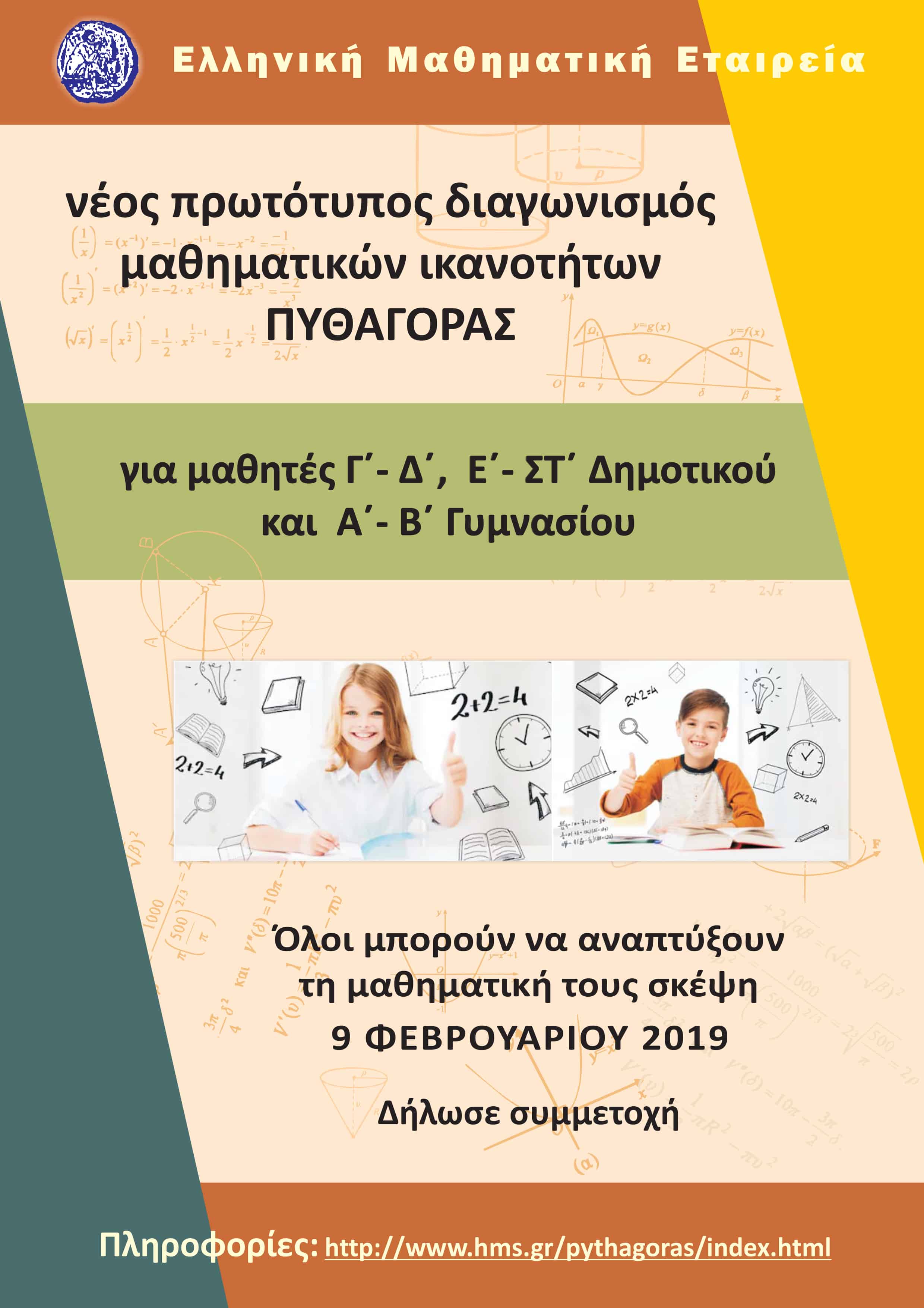 Με μεγάλη επιτυχία ολοκληρώθηκε η συμμετοχή μαθητών Γυμνασίου της Εκπαιδευτικής Αναγέννησης στον Διαγωνισμό Μαθηματικών Ικανοτήτων «Πυθαγόρας» που πραγματοποιήθηκε στις 9 Φεβρουαρίου 2019.