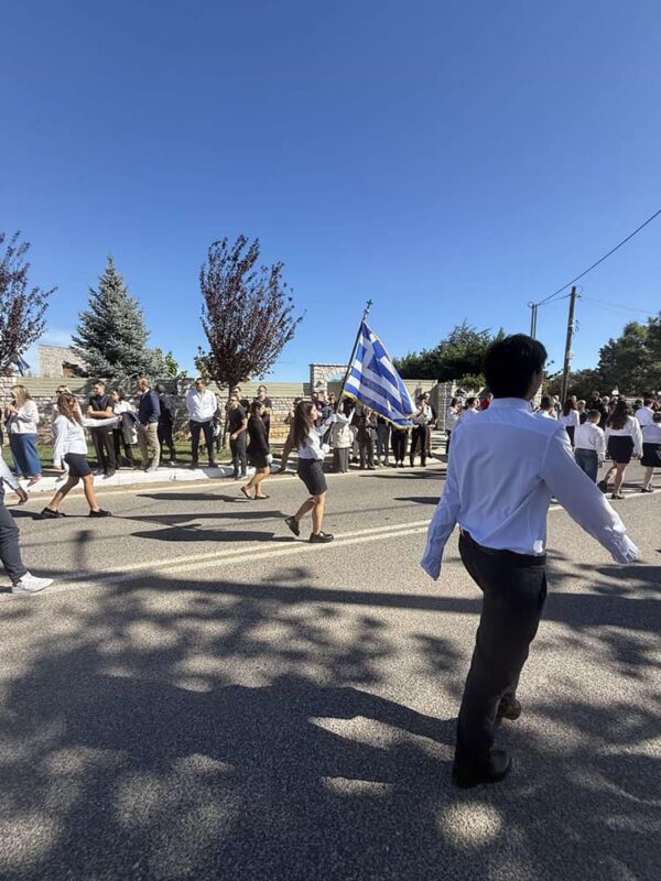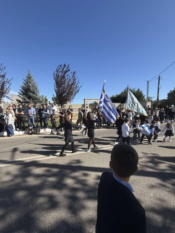 Με υπερηφάνεια τα αγήματα της παρέλασης παρατάχθηκαν στο προαύλιο, ενώ οι μαθητές του Νηπιαγωγείου και του Δημοτικού παρέλασαν τιμώντας τη Γαλανόλευκη και τα ιδανικά που αυτή συμβολίζει.