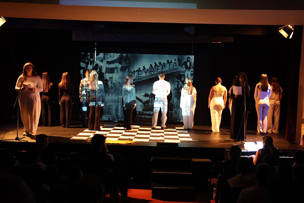 Την Παρασκευή 14 Νοεμβρίου 2025 οι μαθητές και οι μαθήτριες από το Γυμνάσιο και το Λύκειο τίμησαν την Επέτειο του Πολυτεχνείου και παρακολούθησαν την εκδήλωση που είχε η διοργανώσει η Β΄ Λυκείου.