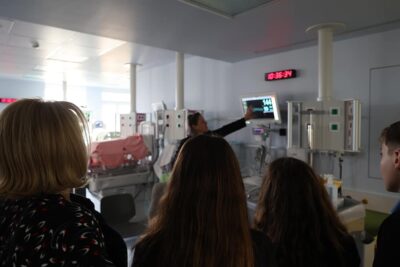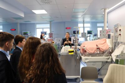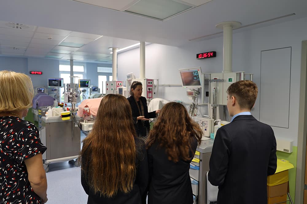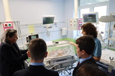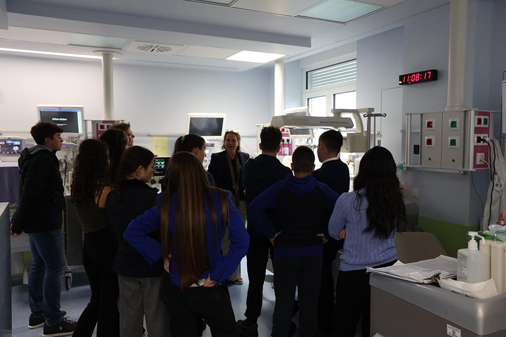 Η Διευθύντρια της Μονάδας Εντατικής Νοσηλείας Νεογνών κα Αγγελική Νίκα υποδέχθηκε τους μαθητές, ξενάγησε την αντιπροσωπεία στους χώρους της Μονάδας και μίλησε για το πολύτιμο έργο του προσωπικού.