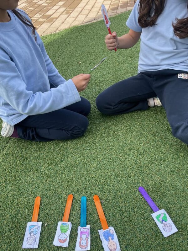 Κατά τη διάρκεια του διαλείμματος, τα παιδιά αξιοποίησαν τις κατασκευές τους για να αυτοσχεδιάσουν σε μικρές παρέες, δημιουργώντας τα δικά τους σενάρια γύρω από καταστάσεις και θέματα που προκύπτουν στην οικογενειακή ζωή. Μέσα από το παιχνίδι, εξασκούν την κριτική τους σκέψη με δημιουργικό τρόπο, καλλιεργούν τον προφορικό τους λόγο και αλληλεπιδρούν ουσιαστικά, ενισχύοντας την κοινωνικότητά τους.