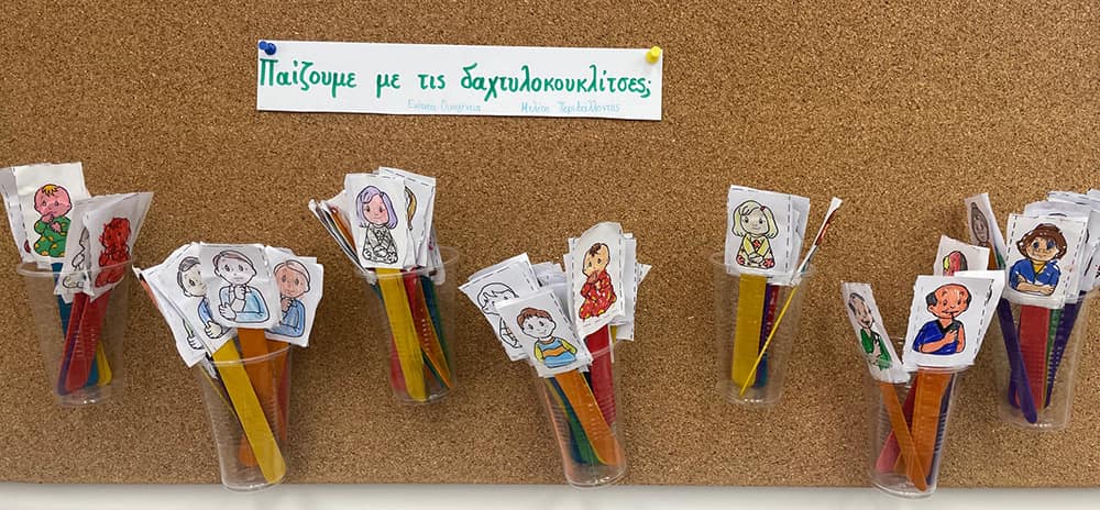 Στο μάθημα της Μελέτης Περιβάλλοντος, στην ενότητα «Η οικογένειά μου», οι μαθητές και οι μαθήτριες της Α΄ Δημοτικού κατασκεύασαν δαχτυλόκουκλες, αναπαριστώντας όλα τα μέλη της οικογένειας και αναπτύσσοντας παράλληλα δεξιότητες χειροτεχνίας και δημιουργικής έκφρασης.