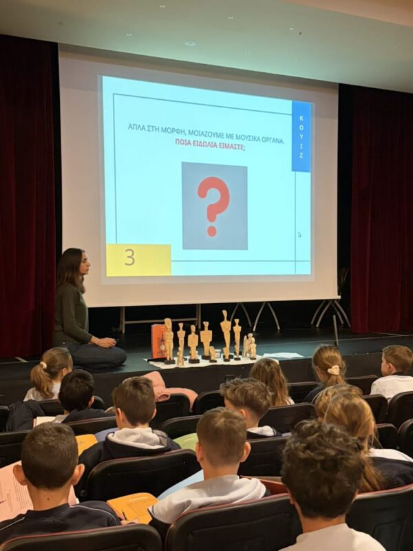 Στη συνέχεια, στο Θέατρο του Σχολείου, πραγματοποιήθηκαν βιωματικές δραστηριότητες από την εκδότρια κα Άννα-Μαρία Βλάσση, στο πλαίσιο του εκπαιδευτικού προγράμματος «Μια διάσημη κοινωνία ζωντανεύει», με επίκεντρο το βιβλίο. Η δράση έλαβε χώρα στις 2 Απριλίου 2026, ανήμερα της Παγκόσμιας Ημέρας Παιδικού Βιβλίου.