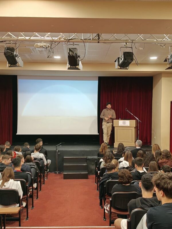 Ο κ. Αρετάκης παρουσίασε την προσωπική του διαδρομή, μιλώντας για την αγάπη του για τα Μαθηματικά και τον τρόπο με τον οποίο η μαθηματική σκέψη μπορεί να βοηθήσει στην κατανόηση του κόσμου γύρω μας. Ιδιαίτερη έμφαση έδωσε στη Γεωμετρία και στη σύνδεσή της με φυσικά φαινόμενα, μετατρέποντας πολύπλοκες έννοιες σε κατανοητές και εντυπωσιακές εμπειρίες μάθησης.