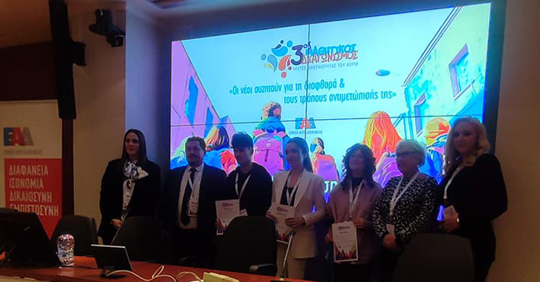 Με εξαιρετική επιτυχία και πανελλήνια αναγνώριση σφραγίστηκε η συμμετοχή της Εκπαιδευτικής Αναγέννησης στον 3ο Πανελλήνιο Μαθητικό Διαγωνισμό «Ηγέτες Ακεραιότητας του Αύριο», που διοργανώθηκε από την Εθνική Αρχή Διαφάνειας και είχε ως θέμα τη διαφθορά και τους τρόπους αντιμετώπισής της.
