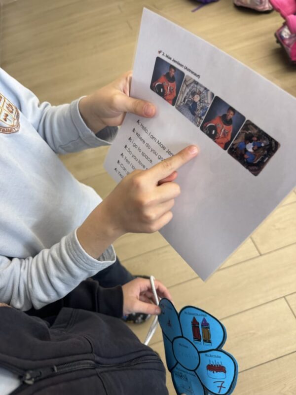 Η θεματική υλοποιήθηκε μέσα από δημιουργικές δραστηριότητες στα αγγλικά, όπως act outs και role play, όπου οι μαθητές υποδύθηκαν τους συνεντευκτές και σύγχρονες γυναίκες επιστήμονες και συμπλήρωσαν ένα quiz γνώσεων. Επιπλέον, παρακολούθησαν ένα σύντομο εκπαιδευτικό βίντεο για τη ζωή και το έργο της Marie Curie, μέσα από το οποίο γνώρισαν ένα σημαντικό επιστημονικό πρότυπο και εμπνεύστηκαν από την επιμονή και την προσφορά της.